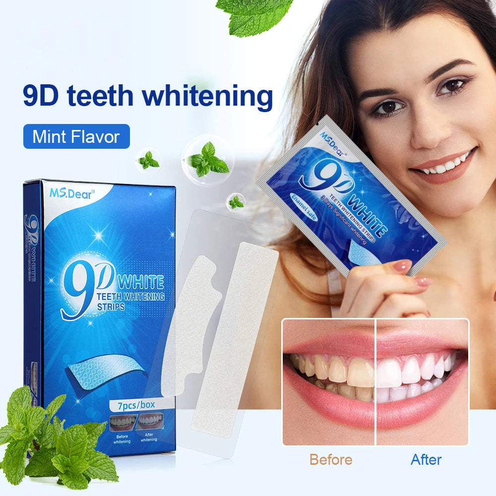9D Teeth Whitening Strips – Mint Fresh Double-Elastic Formula (14 pcs)